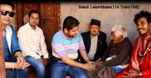Batuli Lamichhane, who lives in the ward no. 8 of kakani village on chapathok of Nuwakot district, is going to be a 116 years old this year . Even in this age she looks healthy and energetic.