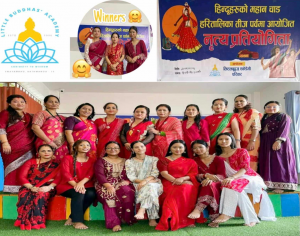 काठमाडौं । हिन्दू नारीहरुको महान चाड हरितालिका तीज पर्वको पावन अवसरमा लिटल बुद्धज एकेडेमी स्वयम्भूले अभिभावक तथा शिक्षिकाबीच तीज गीतमा नृत्य प्रतियोगिता तथा दर खाने कार्यक्रम सम्पन्न गरेको छ । तीज गीत नृत्य प्रतियोगितामा अभिभावकद्व्य सगुन परियार र प्रतिमा श्रेष्ठले क्रमश: प्रथम र द्धितिय स्थान गर्नुभयो भने शिक्षिका सुमिक्षा तामाङ्ले तृतिय स्थान हासिल गर्नुभएको छ